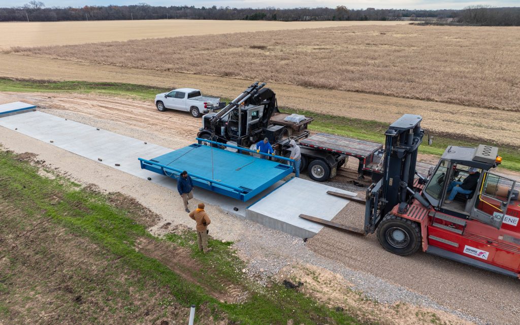 In December 2025, Iron Horse continued progress on the installation of its new 80’x12’ flattop steel deck 100-ton truck scales.